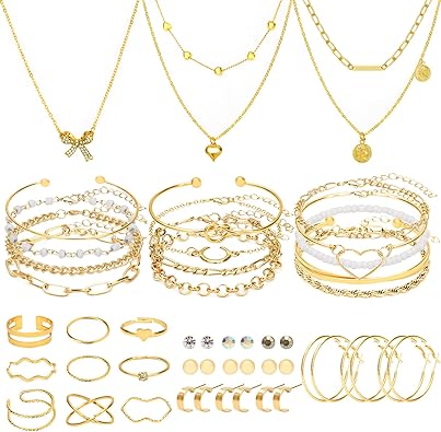 NEWITIN 49 Pieces Gold Jewelry Set for Women Fashion Costume Jewelry Gold Plated Necklace Bracelet Ring Earrings Set for Women